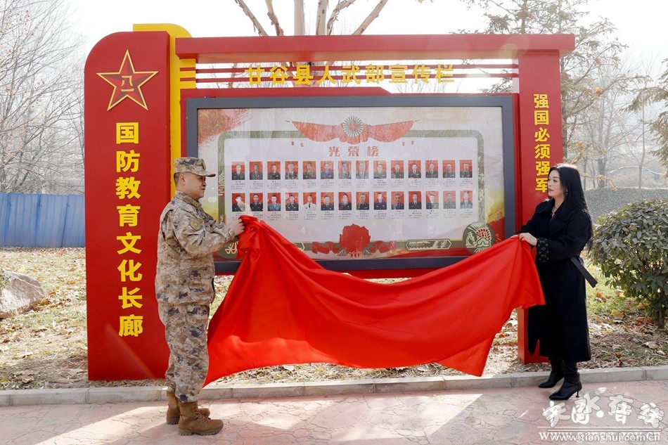 新甘谷訊【記者 頡鳳】12月7日,甘谷縣國防教育文化長廊落成典禮暨2024年征兵宣傳啟動儀式在大像山公園舉行?h人武部部長趙峰出席儀式并講話,縣人武部政委楊磊主持儀式?h退役軍人事務局負責人、各鄉(xiāng)鎮(zhèn)專武干部和部分立功受獎的官兵親屬代表參加啟動儀式。