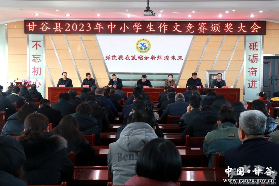 新甘谷訊【記者 何樂】12月17日,甘谷縣2023年中小學(xué)作文競賽頒獎大會在西關(guān)中學(xué)召開?h教育局相關(guān)負責人,各參賽學(xué)校校長、學(xué)區(qū)校長,以及獲獎師生代表共計180余人參加會議。