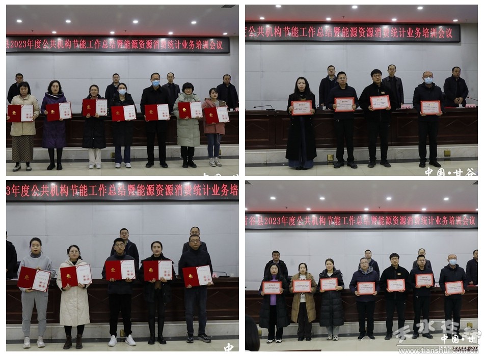 會(huì)議宣讀了《關(guān)于第三批節(jié)約型機(jī)關(guān)創(chuàng)建結(jié)果的通報(bào)》和《甘谷縣機(jī)關(guān)事務(wù)管理局關(guān)于表彰2023年度甘谷縣公共機(jī)構(gòu)節(jié)能工作先進(jìn)集體和先進(jìn)個(gè)人的通報(bào)》,并為2023年全縣公共機(jī)構(gòu)節(jié)能工作先進(jìn)集體和先進(jìn)個(gè)人頒發(fā)了榮譽(yù)證書。