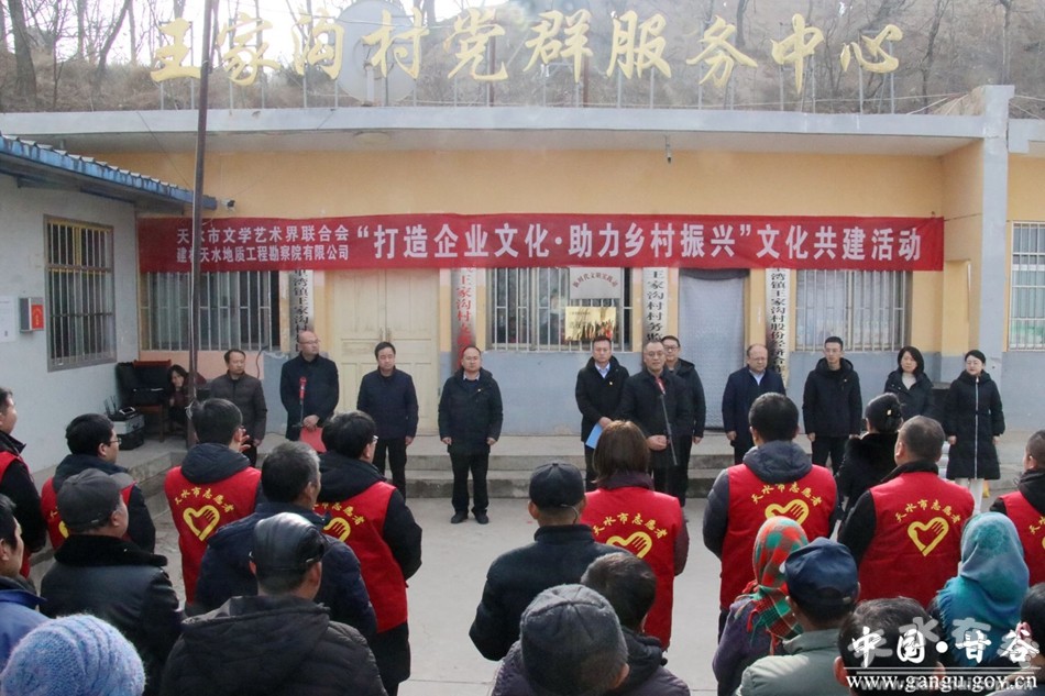 新甘谷訊【記者李宛郁】為充分發(fā)揮企業(yè)助力地方經(jīng)濟建設(shè)作用,推動鞏固拓展脫貧攻堅成果同鄉(xiāng)村振興有效銜接。1月17日上午,天水市文聯(lián)攜手建材天水地質(zhì)工程勘察院有限公司在八里灣鎮(zhèn)王家溝村舉行“打造企業(yè)文化·助力鄉(xiāng)村振興”文化共建活動和助力鄉(xiāng)村建設(shè)捐贈儀式。市文聯(lián)黨組成員、副主席文軍、孫德虎,建材天水地質(zhì)工程勘察院有限公司黨支部書記、總經(jīng)理王智強,縣委副書記梁柱出席捐贈儀式。