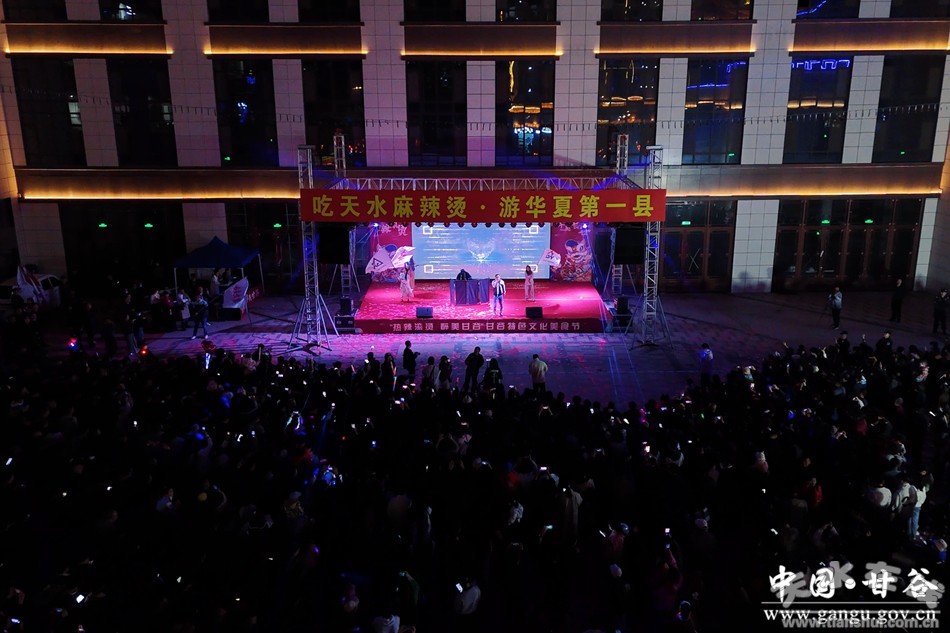 新甘谷訊【記者 王純偉】 4月7日晚,甘肅豪盛時(shí)代商貿(mào)有限公司在冀城小鎮(zhèn)舉行專場文藝匯演活動助力特色文化美食節(jié)。