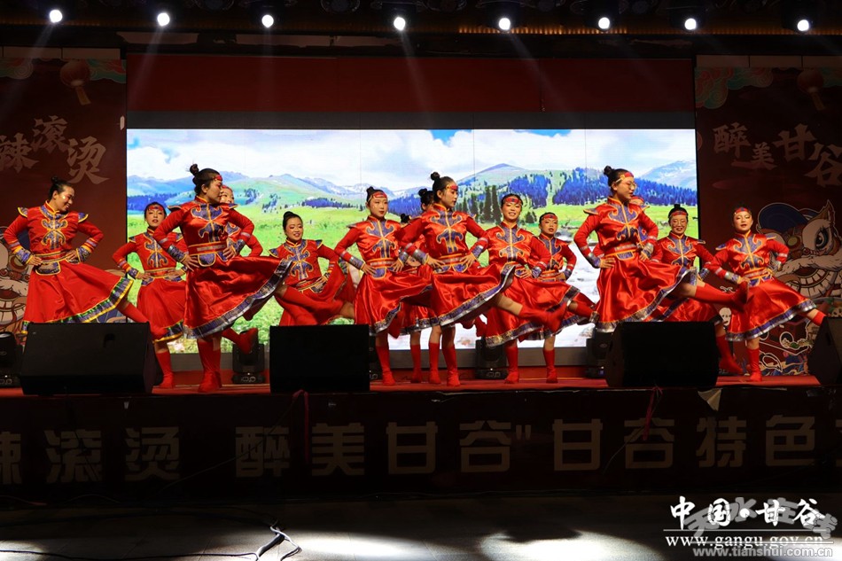 當晚的演出總共分為這里是甘谷、我們在甘谷、未來看甘谷三個篇章,舞蹈、歌曲、武術、農特產品推介等環(huán)節(jié)輪番上演,給現場觀眾帶來了一場精彩的視覺文化盛宴。