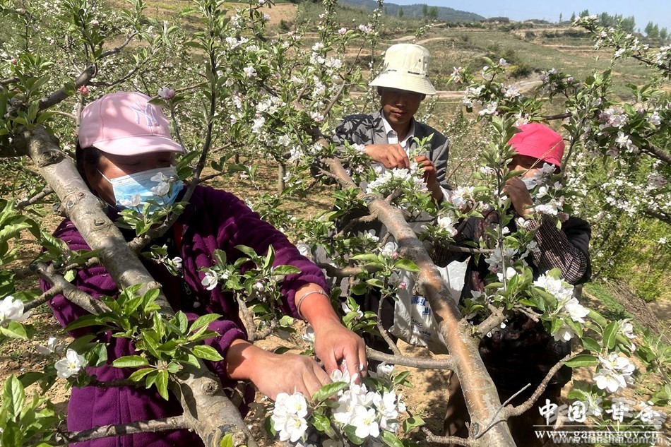 俗話說:“花期不疏花,樹枝掛果也白搭”。疏花是春季蘋果管理的重要環(huán)節(jié),對提高坐果率、增強樹勢、增大果實具有重要作用。連日來,在甘谷縣磐安鎮(zhèn)金川片區(qū)的萬畝蘋果種植基地,粉白相間的蘋果花競相盛開,香氣襲人,果農(nóng)們或拿著手提袋、或踩著梯子,穿梭在一棵棵蘋果樹間,熟練地進行著花期管理。
