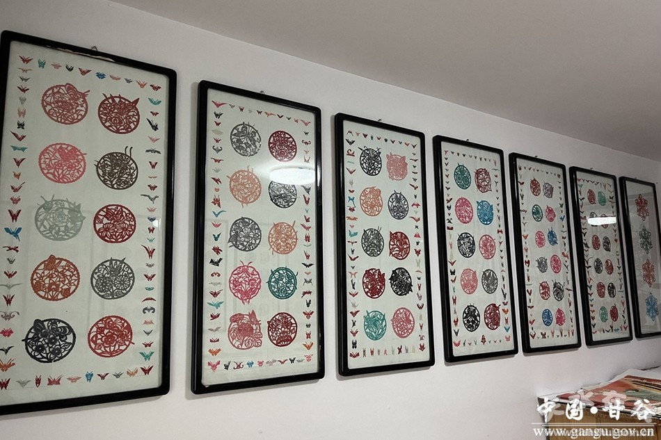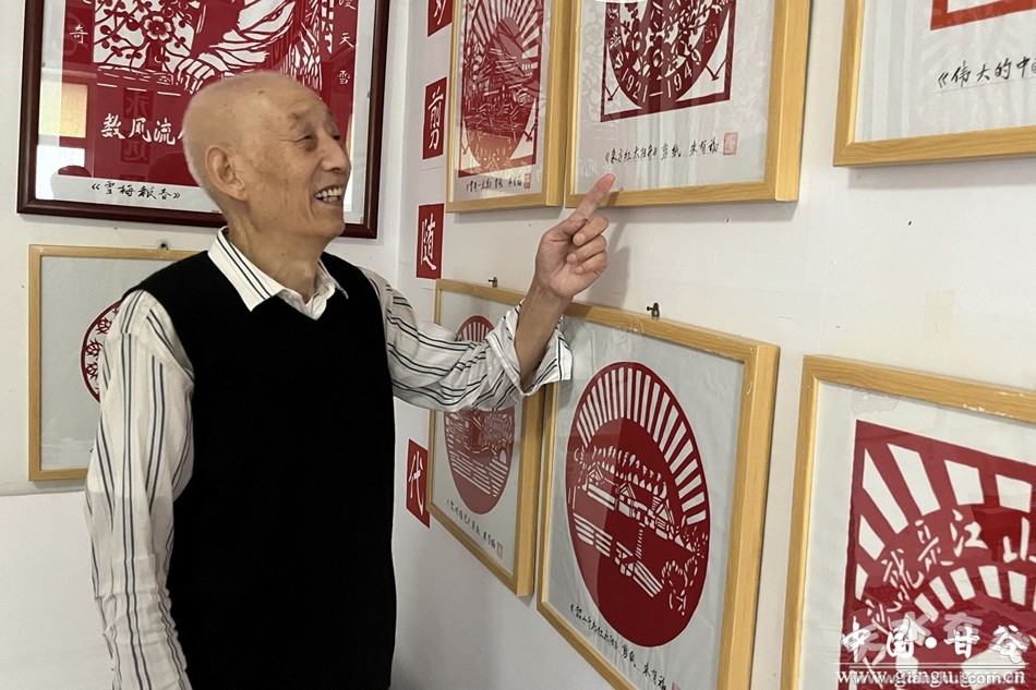甘谷縣民間剪紙藝人朱有福說:“今年是中華人民共和國成立75周年。我一生喜歡剪紙,在這慶祝祖國生日的時(shí)節(jié)我剪了一些首都北京天安門。另外今年是龍年,我剪了一個(gè)龍鳳呈祥和雙龍騰飛,表達(dá)自己對(duì)剪紙藝術(shù)的熱愛。毛主席的這四幅剪紙肖像出了個(gè)郵票,我作為剪紙愛好者,利用我的這個(gè)技能歌頌黨、歌頌祖國、歌頌人民。”