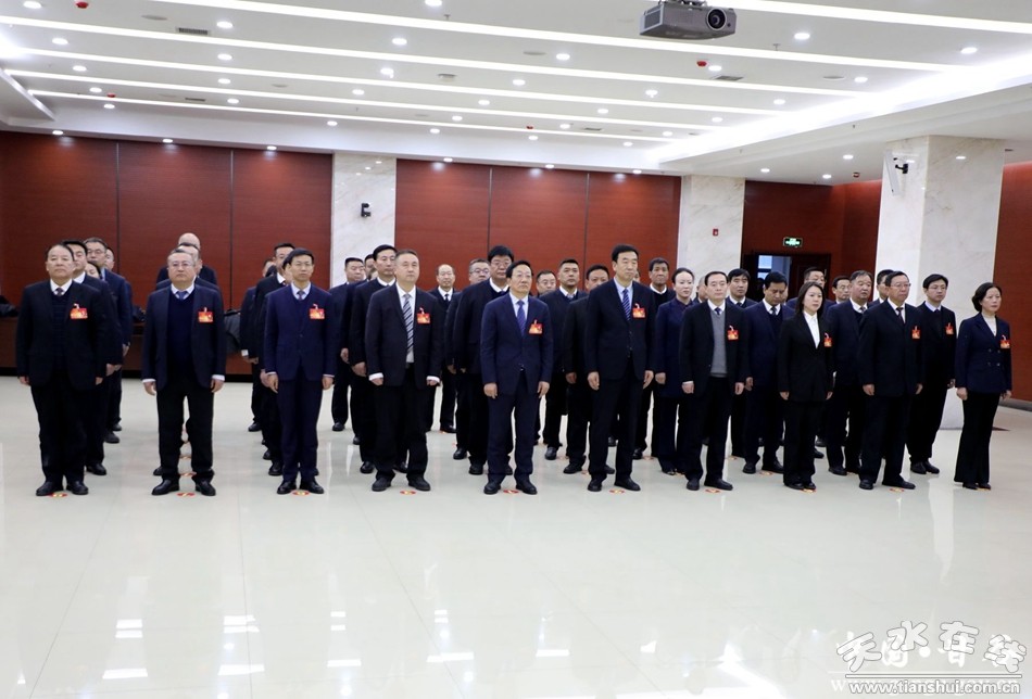 新當(dāng)選的甘谷縣人民政府縣長(zhǎng)許祖熙;縣人大常委會(huì)主任于旭峰,縣人大常委會(huì)副主任魏杰、張海平,縣人民政府副縣長(zhǎng)陳向榮,縣監(jiān)察委員會(huì)主任惠斌,縣十八屆人大常委會(huì)委員王建平,縣十八屆人大社會(huì)建設(shè)委員會(huì)副主任委員張來(lái)明、法治委員會(huì)委員馬利平進(jìn)行了集體宣誓。