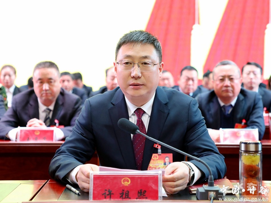 新當(dāng)選的甘谷縣人民政府縣長許祖熙在第四次全體會議上講話。他說,黨和人民把甘谷改革發(fā)展的“接力棒”交給我,我深知,這是一份沉甸甸的責(zé)任和擔(dān)當(dāng),更是全縣64萬人民的厚愛和期待,我一定團(tuán)結(jié)帶領(lǐng)縣政府一班人,在縣委堅(jiān)強(qiáng)領(lǐng)導(dǎo)下,在縣人大、縣政協(xié)的監(jiān)督支持下,以永不懈怠的精神狀態(tài)和一往無前的奮斗姿態(tài),恪盡職守,砥礪奮進(jìn),奮力開創(chuàng)甘谷高質(zhì)量發(fā)展新局面。