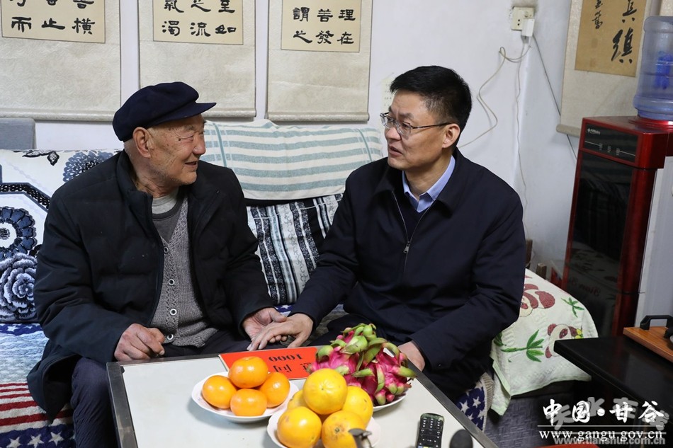 在離退休老干部馬化麟家中,孫忠平看到老人雖年已近百,但依舊精神飽滿,身體硬朗時(shí),孫忠平由衷地感到高興。他親切地握著老人的手,與其拉家常,話心聲,簡要介紹了過去一年全縣經(jīng)濟(jì)社會發(fā)展情況,認(rèn)真傾聽意見和建議。孫忠平說,廣大離退休老干部不僅是甘谷發(fā)展的見證者,更是參與者與推動者,要加強(qiáng)與老干部的溝通聯(lián)系,主動傾聽他們的心聲和需求,及時(shí)了解他們的思想動態(tài)和生活狀況,落實(shí)好相關(guān)政策待遇,讓廣大離退休干部共享改革發(fā)展成果、安享幸福晚年。