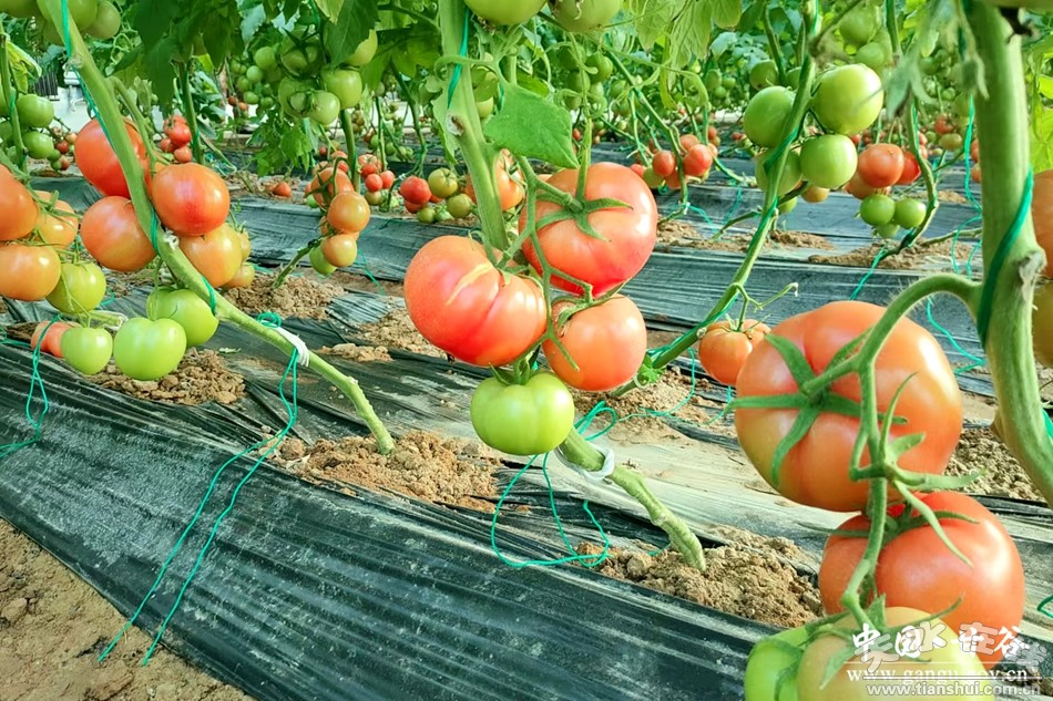 除了傳統(tǒng)優(yōu)勢(shì)蔬菜種植外,新引進(jìn)的高附加值精品蔬菜也即將成熟上市。在甘谷縣磐安鎮(zhèn)現(xiàn)代農(nóng)業(yè)產(chǎn)業(yè)園里,一排排溫室大棚整齊排列,棚內(nèi)溫暖如春,綠意盎然。只見藤蔓間掛滿了沉甸甸的西紅柿和辣椒,紅彤彤的果實(shí)點(diǎn)綴在綠葉之中,煞是喜人。