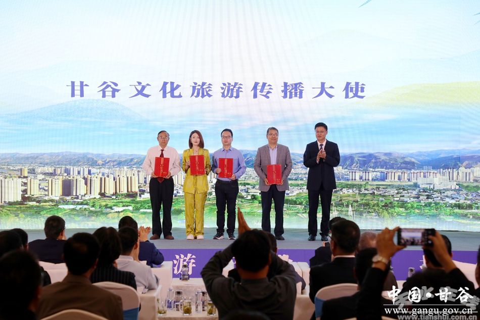 會(huì)上,孫忠平為4名甘谷文化旅游傳播大使代表頒發(fā)了聘書,現(xiàn)場觀看了《走進(jìn)甘谷—文旅宣傳推介片》,進(jìn)行了景區(qū)景點(diǎn)推介、項(xiàng)目簽約,有關(guān)代表進(jìn)行了發(fā)言,會(huì)議還進(jìn)行了網(wǎng)絡(luò)直播。