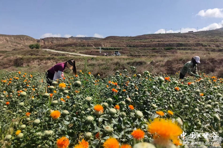 甘谷縣供贏葒花種植農(nóng)民專業(yè)合作社負責人王森明介紹,今年合作社共種植紅花1000余畝,目前正值采摘高峰期,基地日均用工量達六七十人!磅r紅花畝產(chǎn)能達到90斤左右,工人們按斤計酬,熟練工一天能掙150至200元。”為滿足用工需求,合作社不僅動員本地村民參與,還從四川、新疆等地吸納季節(jié)性工人,通過“跨省協(xié)作”保障采摘進度。