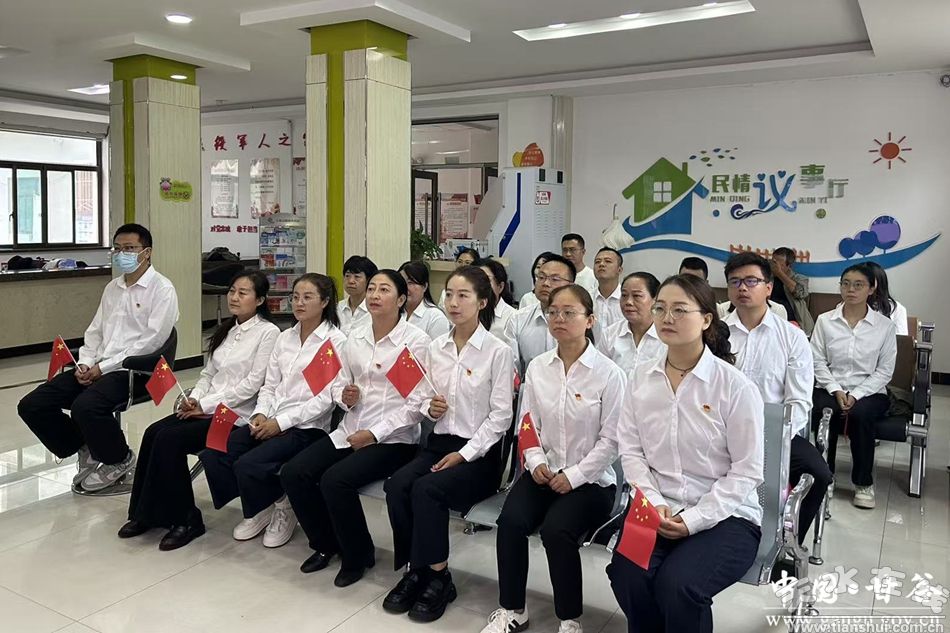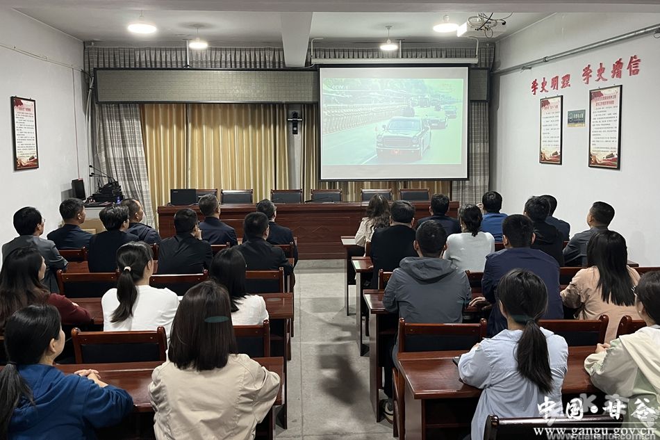 上午八點(diǎn)多,甘谷縣各機(jī)關(guān)單位、鄉(xiāng)鎮(zhèn)、社區(qū)的會議室和活動中心座無虛席,干部群眾早早地集中到這里,懷著激動的心情等待閱兵式的開始。9時許,當(dāng)莊嚴(yán)的國歌響起,全場人員自發(fā)起立,齊聲高唱,鮮艷的五星紅旗冉冉升起,大家的目光中充滿了對祖國的敬意和熱愛。
