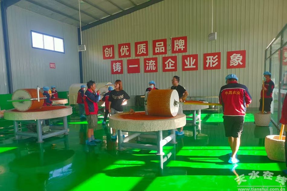 走進(jìn)豐晟農(nóng)業(yè)農(nóng)民專(zhuān)業(yè)合作社的加工車(chē)間,機(jī)器聲轟鳴,工人們正熟練地對(duì)辣椒進(jìn)行分揀、焙炒、切絲、碾碎、篩選、分級(jí)等精深加工。合作社負(fù)責(zé)人尉海龍介紹說(shuō):“我們沿用古法技藝,包括石碾研磨等工藝保留辣椒粗糲顆粒感與原始風(fēng)味,深受消費(fèi)者的喜愛(ài),其中‘溪園弘’辣椒品牌入選2022年‘甘味’農(nóng)產(chǎn)品目錄。借助‘甘味’品牌的影響力,我們的產(chǎn)品銷(xiāo)量不斷增加,效益顯著提升。截至目前,豐晟農(nóng)業(yè)農(nóng)民專(zhuān)業(yè)合作社已累計(jì)帶動(dòng)禮辛鎮(zhèn)寨子村、尉坪村等11個(gè)村發(fā)展辣椒標(biāo)準(zhǔn)化種植2500余畝!