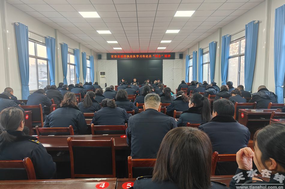 新甘谷訊【通訊員王金弟】盛會凝聚力量,使命激勵奮進?h兩會勝利閉幕后,甘谷縣城管執(zhí)法隊迅速行動,第一時間組織全隊干部職工召開專題會議,學習傳達縣兩會精神,結合城市管理執(zhí)法實際,研究部署貫徹落實舉措,推動兩會精神在城管領域落地生根、開花結果。
