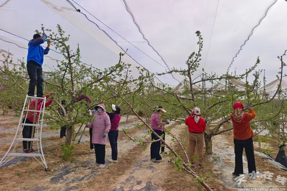眼下正值蘋(píng)果樹(shù)花期管理的關(guān)鍵時(shí)期,繁花滿(mǎn)枝的果園里,一派繁忙的勞作景象。果農(nóng)們頭戴草帽、手持工具,穿梭在果樹(shù)行間,搶抓農(nóng)時(shí)開(kāi)展疏花、修枝、輔助授粉等管護(hù)工作。