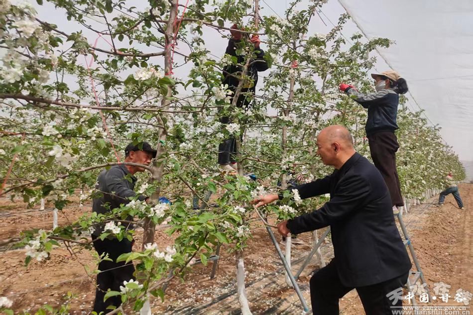 新甘谷訊【記者王永吉】春風(fēng)送暖,繁花滿枝。當(dāng)前,甘谷縣各地蘋果樹相繼進(jìn)入盛花期,漫山遍野的蘋果花競相綻放、美不勝收。搶抓花期關(guān)鍵節(jié)點(diǎn),廣大果農(nóng)有序開展疏花作業(yè),農(nóng)技人員下沉一線貼心指導(dǎo),多措并舉抓實(shí)春季果園管理,為全年蘋果提質(zhì)增效、豐產(chǎn)豐收打下堅(jiān)實(shí)基礎(chǔ)。