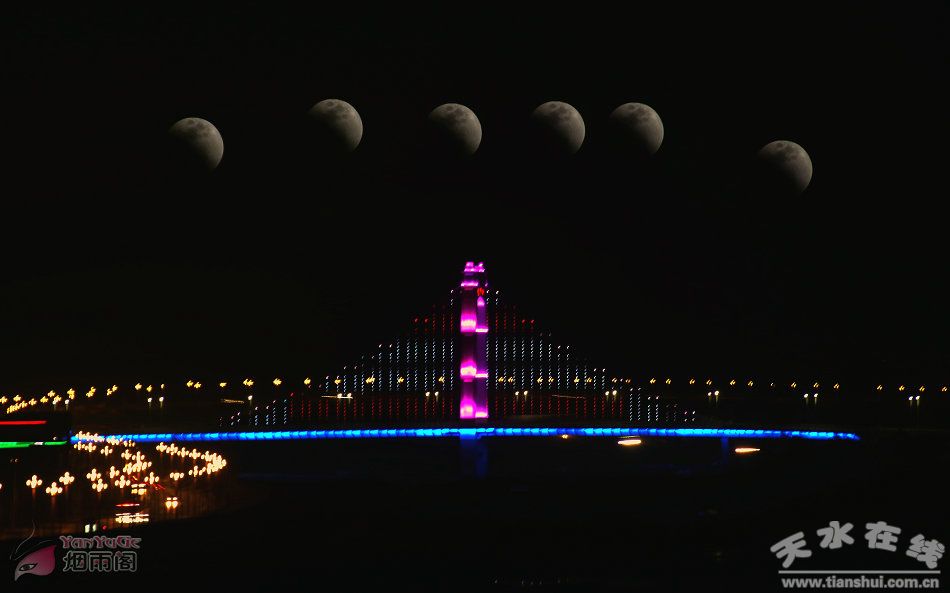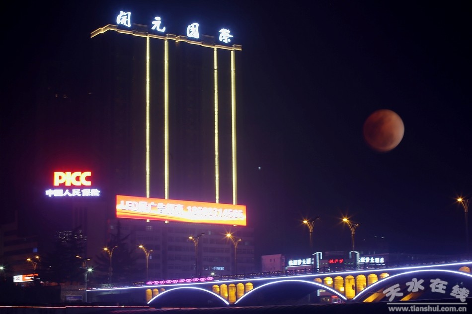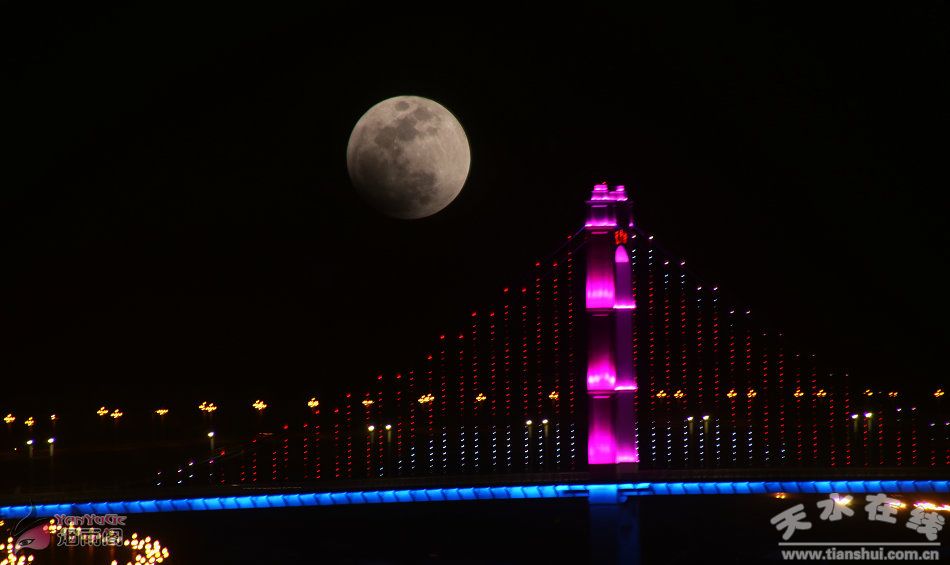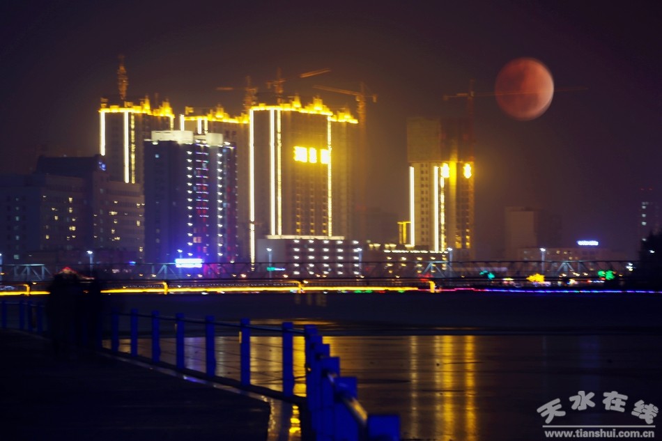 天水在線報道 1月31日晚,古城天水上空上演罕見的超級“藍”月全食,“藍月亮”、“紅月亮”、“超級月亮”組團亮相。天水在線派出6路記者,在秦州區(qū)天水湖、天秀橋、紅橋、龍城廣場和麥積區(qū)翠湖、馬跑泉公園等地進行了拍攝。據(jù)說上一次發(fā)生這樣的巧合,可以追溯到152年前的1866年3月31日。
