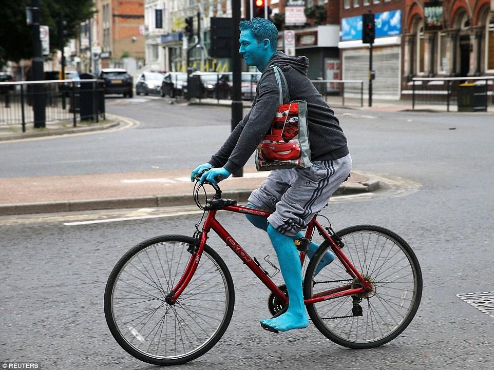 穿上衣服后的模特讓人有種真人版藍精靈的錯覺。圖為騎自行車回家的“藍精靈”。 本新聞共 2頁,當(dāng)前在第 01頁 0102 |