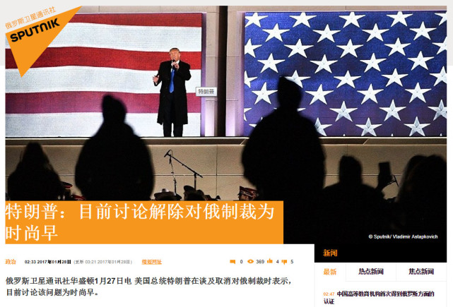 【環(huán)球網(wǎng)綜合報(bào)道】俄羅斯衛(wèi)星網(wǎng)1月28日?qǐng)?bào)道稱,美國(guó)總統(tǒng)特朗普近日在談及取消對(duì)俄制裁時(shí)表示,目前討論該問(wèn)題為時(shí)尚早。