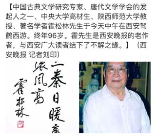 天水籍中國古典文學(xué)專家霍松林辭世 享年96歲