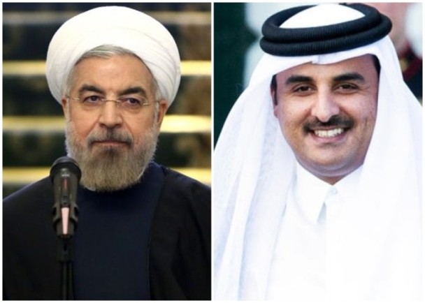 伊朗總統(tǒng)魯哈尼(左)與卡塔爾國家元首塔米姆(右)