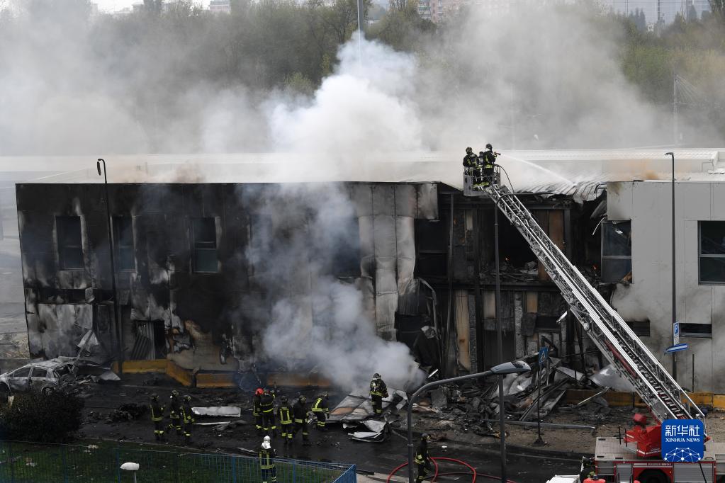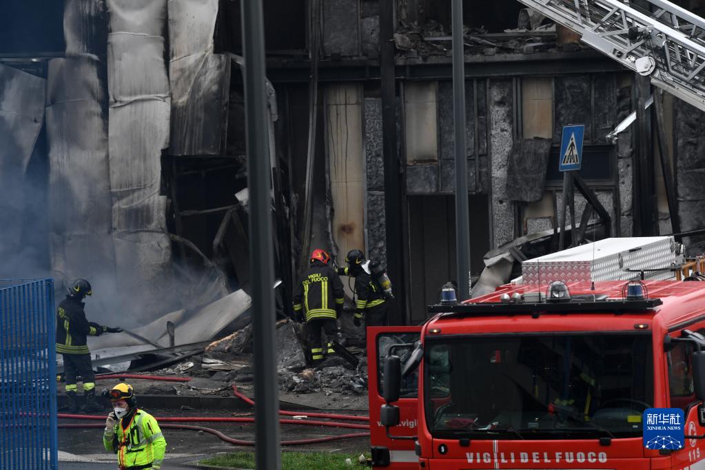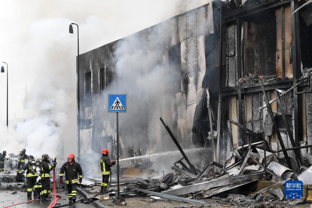 10月3日,消防員在意大利米蘭郊區(qū)的事故現(xiàn)場工作。新華社發(fā)