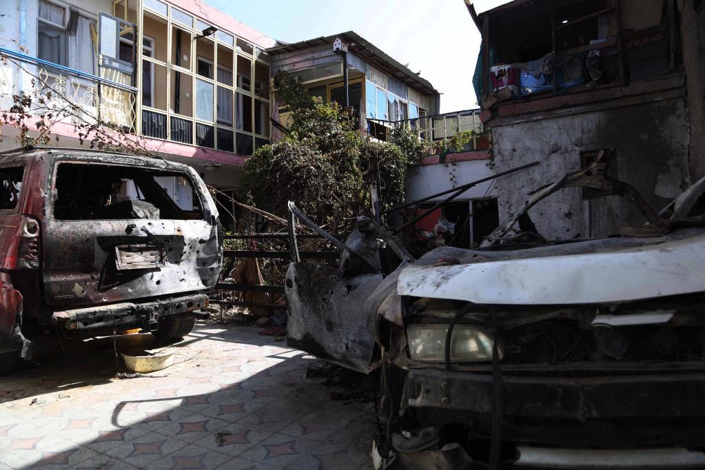 美軍2021年8月29日對阿富汗喀布爾一處居民區(qū)發(fā)起無人機打擊,造成包括7名兒童在內的10名平民死亡。圖為當年9月2日拍攝的在此次空襲中被損毀的汽車。(新華社發(fā),塞夫拉赫曼·薩菲攝)