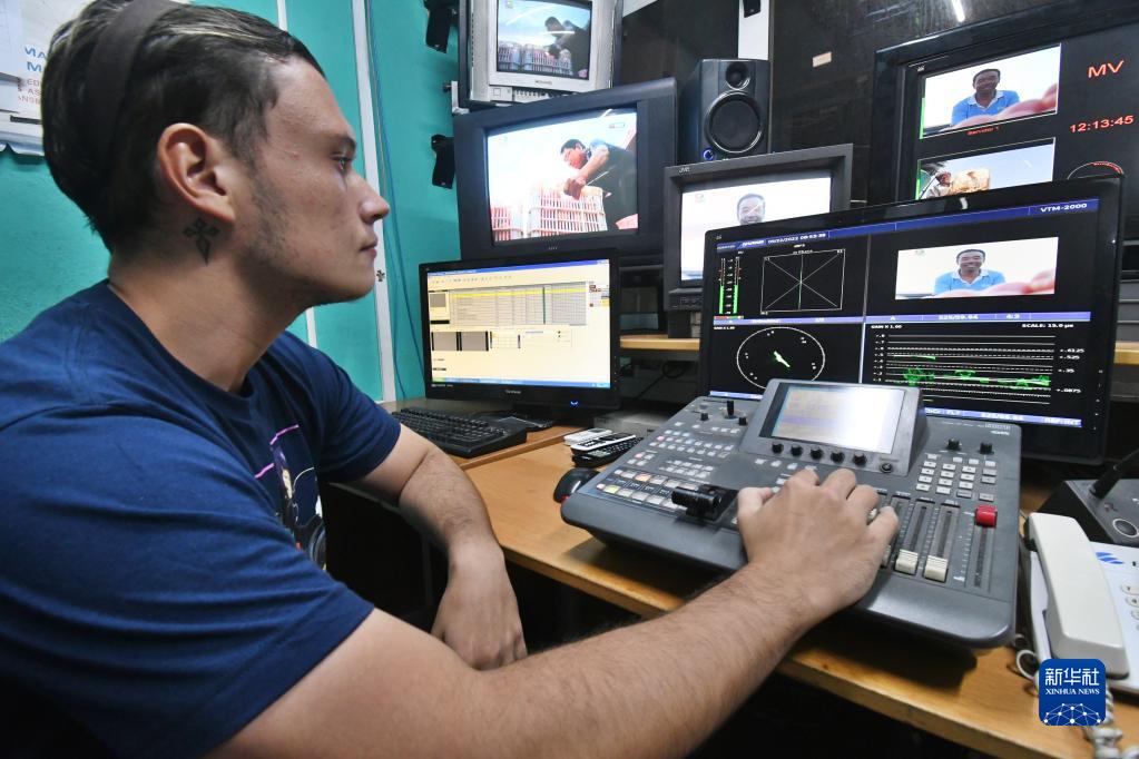 9月22日,在古巴首都哈瓦那,古巴國家電視臺多視覺頻道的技術(shù)人員在演播室準(zhǔn)備播放中國紀(jì)錄片《我的鄉(xiāng)村故事》。新華社發(fā)(華金·埃爾南德斯 攝)