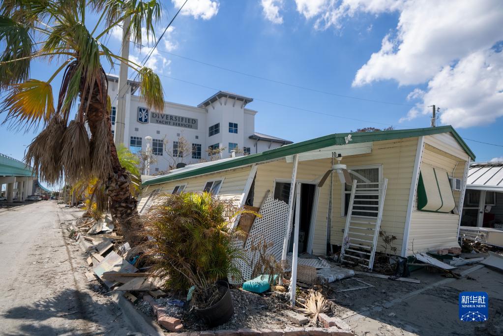 這是10月4日在美國佛羅里達州邁爾斯堡拍攝的遭颶風“伊恩”破壞的碼頭。 新華社發(fā)(羅蘭多·洛佩斯攝)