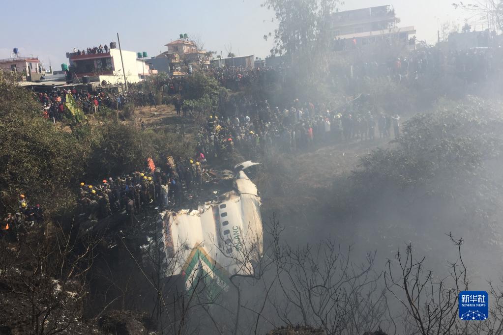 這是1月15日在尼泊爾博克拉地區(qū)拍攝的客機墜毀現(xiàn)場。新華社發(fā)(尼通社供圖)