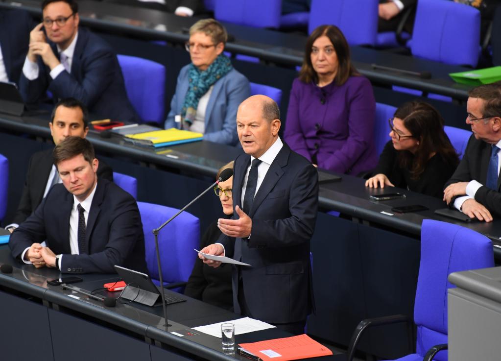 1月25日,德國總理朔爾茨(前排右一)在位于柏林的德國聯(lián)邦議會接受問詢。新華社記者任鵬飛攝