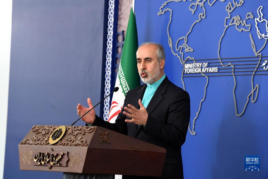 4月17日,在伊朗首都德黑蘭,伊朗外交部發(fā)言人卡納尼在例行記者會(huì)上。新華社記者 沙達(dá)提 攝
