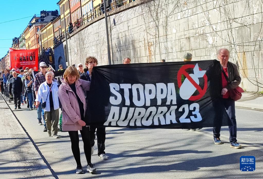 這次抗議活動由瑞典和平與仲裁協會及反對北約、反對核武器等多個組織參與。在首都斯德哥爾摩有大約100人參加活動。人們手持標語牌和橫幅,上面寫著“對北約說不”“停止‘極光23’”等抗議字樣。“極光23”演習指的是目前在瑞典舉行、來自北約成員國2.6萬人參與的軍事演習。