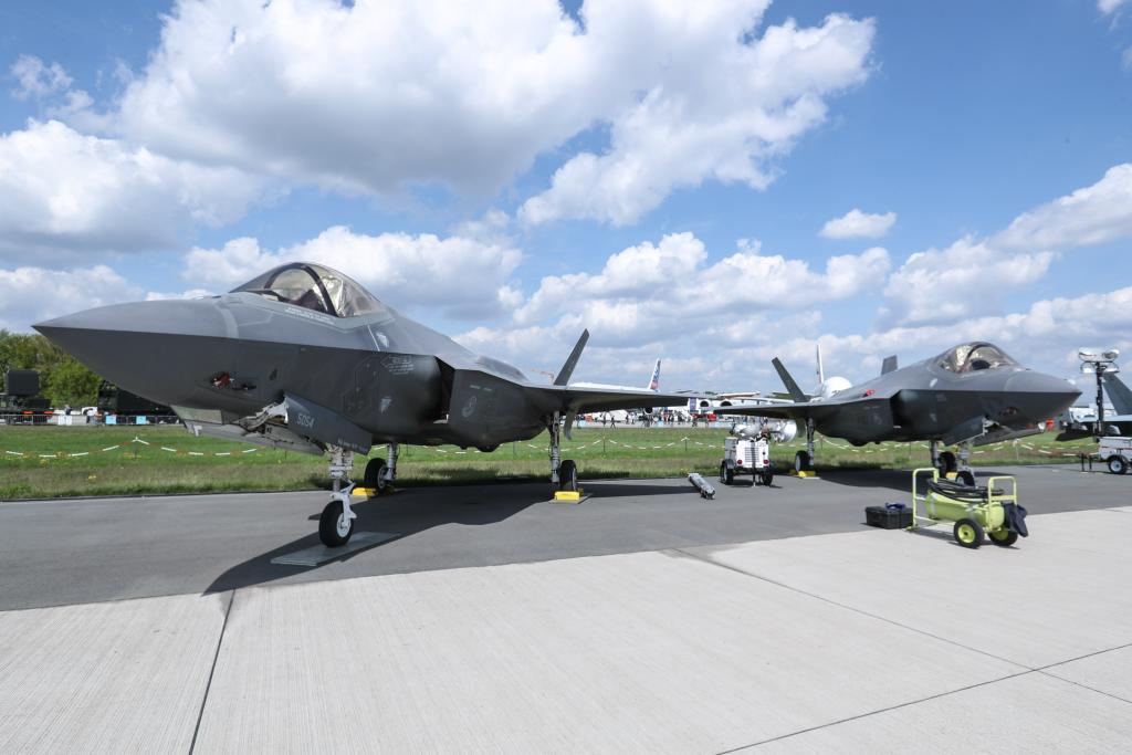 這是2018年4月27日在德國(guó)柏林國(guó)際航空航天展上拍攝的F-35戰(zhàn)斗機(jī)的資料照片。新華社記者單宇琦攝
