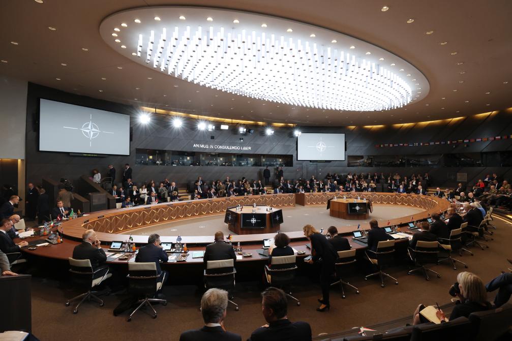 這是6月14日在比利時(shí)布魯塞爾北約總部拍攝的北約防長(zhǎng)會(huì)現(xiàn)場(chǎng)。新華社記者趙丁喆攝