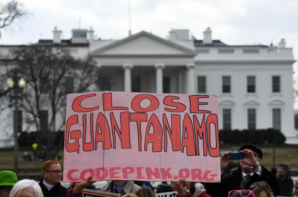 2018年1月11日,人們?cè)诿绹?guó)華盛頓白宮外參加抗議活動(dòng),要求關(guān)閉關(guān)塔那摩監(jiān)獄。新華社記者殷博古攝