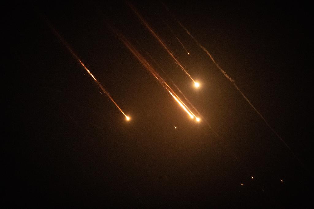 10月1日,以軍防空系統(tǒng)攔截的發(fā)射物從耶路撒冷上空飛過(guò)。新華社記者 陳君清 攝