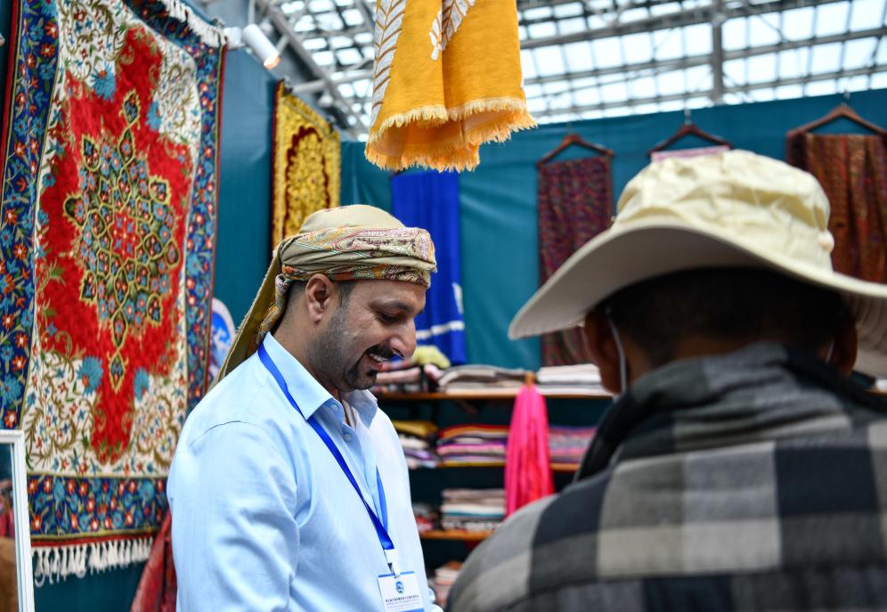 2023年6月18日,一名印度商人在銷(xiāo)售印度特色商品。新華社記者晉美多吉攝
