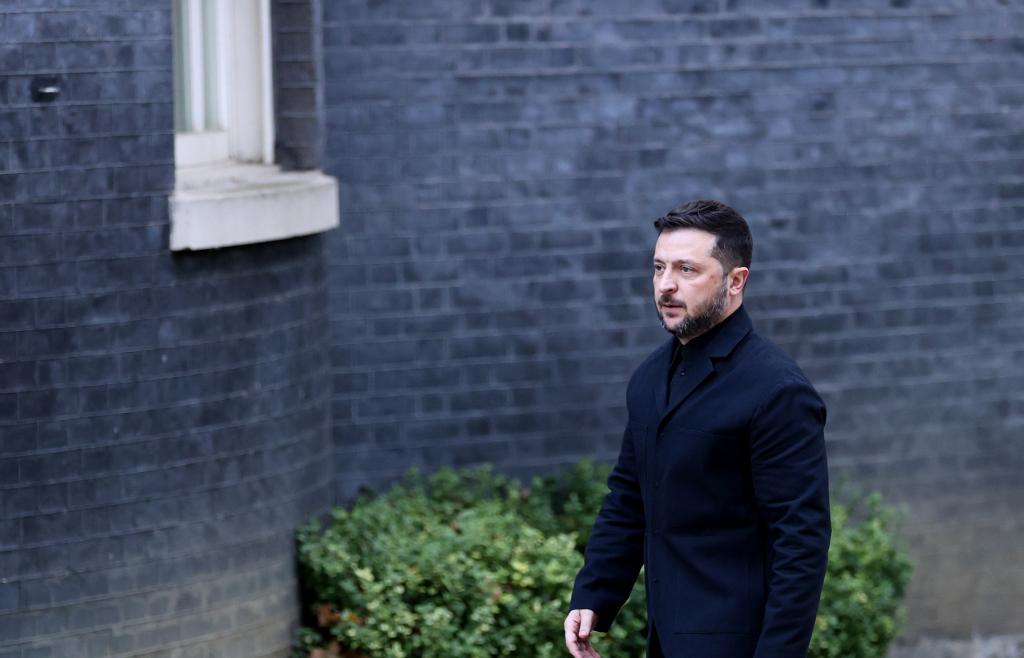 10月24日,在英國倫敦,烏克蘭總統(tǒng)澤連斯基走向唐寧街10號首相府。