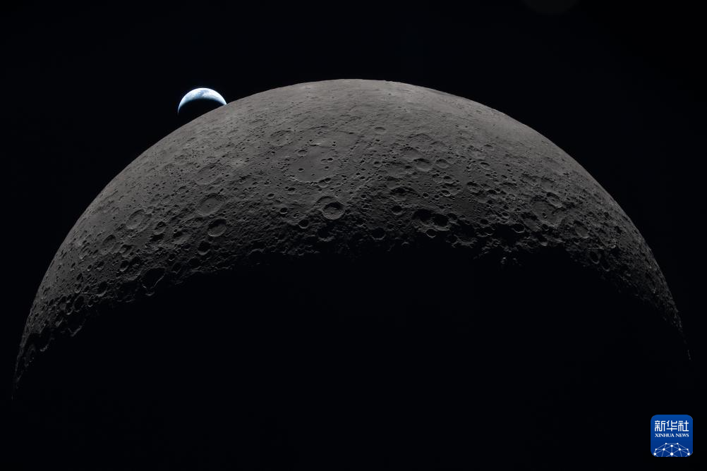這是從執(zhí)行“阿耳忒彌斯2號”載人繞月飛行測試任務(wù)的“獵戶座”飛船上拍攝的地落(4月6日攝)。新華社發(fā)(美國國家航空航天局供圖)