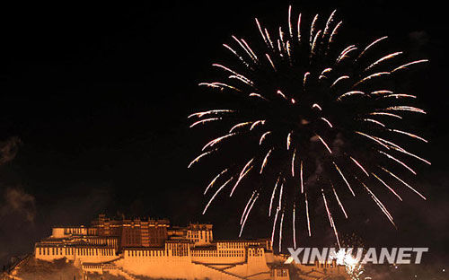 1月26日凌晨,拉薩城內(nèi)火樹銀花迎新春。新華社記者普布扎西攝