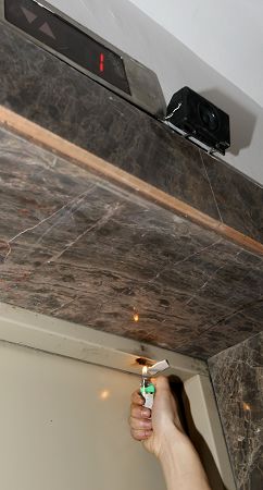 在昨日的試驗中,工作人員在26層電梯門上方的煙感器附近點燃打火機,當溫度超過58℃后,樓道內(nèi)的語音報警響起,“各位業(yè)主,本樓層發(fā)生火災,請不要驚慌,本樓層電梯暫時停止使用,請業(yè)主改乘其他樓層的電梯疏散!彪S即,26層的電梯按鈕“失靈”,其他樓層電梯仍正常運行。
