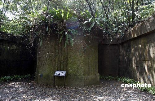 游客可參觀兩蔣時(shí)期的五幢“神秘建筑物”,其中包括“國光計(jì)劃”中的“戰(zhàn)時(shí)指揮所”及大小戰(zhàn)備坑道。后慈湖位于蔣介石陵寢背后,當(dāng)初為其生前常到之處,碉堡與密道增添幾許歷史迷離色采。圖為“戰(zhàn)時(shí)指揮所”地下隧道入口之一。中新社發(fā)杜洋 攝