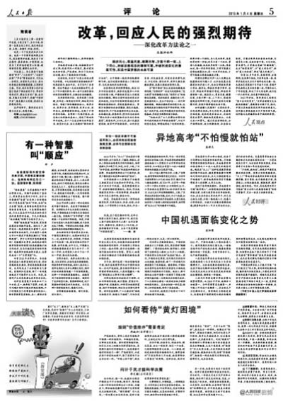 如何讀懂人民期待?以前的改革,為的是解決溫飽;今天的改革,更著眼全面發(fā)展,追求的是社會(huì)公正,關(guān)切的是民眾尊嚴(yán),鑄就的是發(fā)展動(dòng)力。以更大決心和勇氣,建立利益協(xié)調(diào)機(jī)制、公平保障機(jī)制、權(quán)力制衡機(jī)制、社會(huì)參與機(jī)制,才能讓改革為社會(huì)活血化瘀,打通官民心結(jié),成就和諧中國。不失時(shí)機(jī),拿出勇氣,才有能力突破“糾錯(cuò)困境”、走出“轉(zhuǎn)型陷阱”,以“最大的紅利”,抓住“最大的機(jī)遇”,釋放“最大的潛力”。