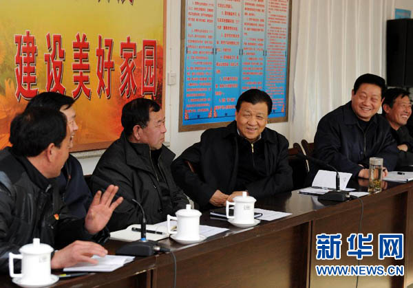 1月11日至14日,中共中央政治局常委、中央書記處書記劉云山在陜西延安、榆林兩地就貫徹落實(shí)黨的十八大精神、開展群眾路線教育實(shí)踐活動進(jìn)行調(diào)研。這是1月11日,劉云山在延川縣禹居鎮(zhèn)農(nóng)村調(diào)研時(shí)與群眾親切交談。 新華社記者饒愛民攝
