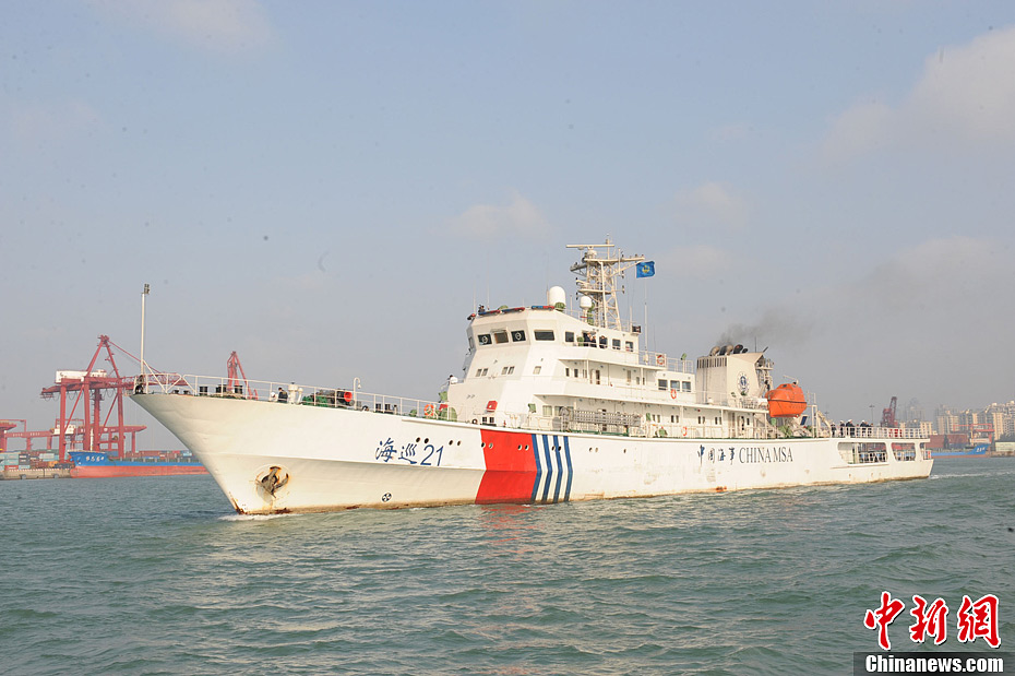 1月15日16時,海南海事“海巡21”船巡航船舶從?趩⒑礁叭乘驁(zhí)行巡航執(zhí)法任務。這是“海巡21”船列編海南海事局后在南海海域的首次亮相。此次巡航的主題是“保障航行安全,保護海洋環(huán)境,維護國家主權(quán)”。2012年12月27日“海巡21”船正式列編海南海事局。中新社發(fā) 付美斌 攝
