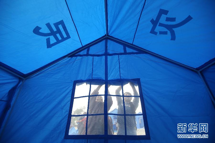 4月22日,四川天全縣仁義鄉(xiāng)的村民在搭建帳篷。當(dāng)日是四川省蘆山“4·20”7.0級強烈地震后的第三日。在受災(zāi)較重的天全縣李家村、程家村、銀坪村、永安村等地,帳篷、方便面、瓶裝水等救災(zāi)物資正在逐步有序發(fā)給村民。新華社記者 邢廣利 攝