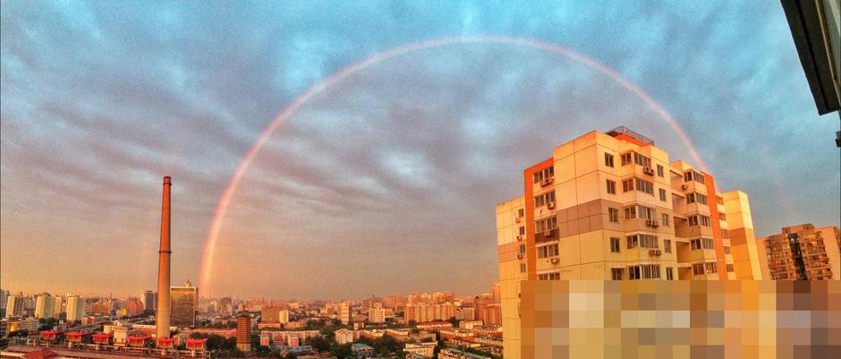 北京多日的陰雨天氣終于結(jié)束,今日傍晚還出現(xiàn)了巨大的彩虹。