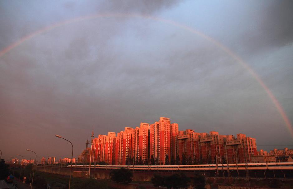 北京多日陰雨天氣結(jié)束 出現(xiàn)巨大彩虹(組圖)