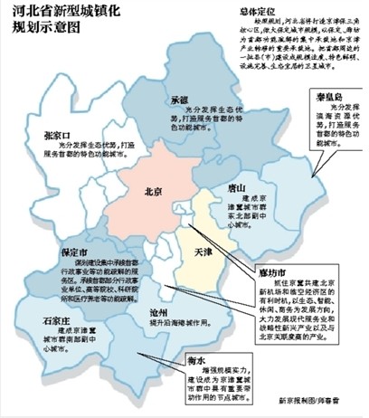 前日,河北省召開推進(jìn)新型城鎮(zhèn)化工作會議,副省長楊汭就《河北省委、省政府關(guān)于推進(jìn)新型城鎮(zhèn)化的意見》作說明!兑庖姟分校颖笔【褪仪f、保定、廊坊等11個城市的功能定位、發(fā)展重點予以了初步規(guī)劃。同日,《河北省新型城鎮(zhèn)化規(guī)劃》提交討論。
