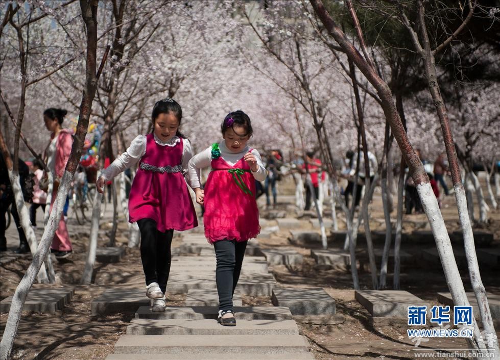 4月5日,在內(nèi)蒙古呼和浩特市公主府公園,兩名女孩在桃樹下跳格子。清明節(jié)小長假期間,在內(nèi)蒙古呼和浩特市公主府公園,眾多游人踏青游玩,享受春光。 新華社發(fā)(李任滋 攝)